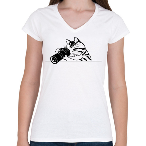 1 kép PRINTFASHION Macska fotózik - Női V-nyakú póló - Fehér