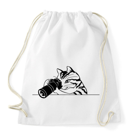 1 kép PRINTFASHION Macska fotózik - Sportzsák, Tornazsák - Fehér