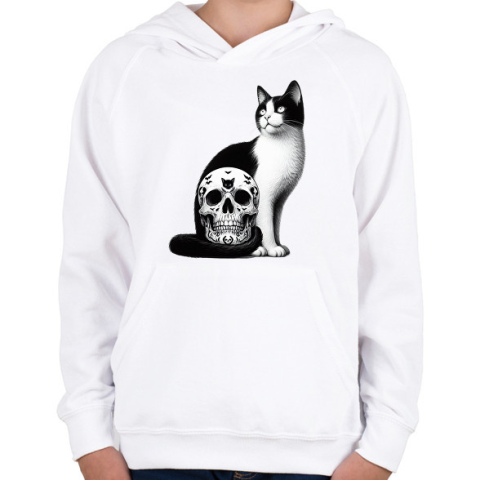 1 kép PRINTFASHION Macska - Gyerek kapucnis pulóver - Fehér