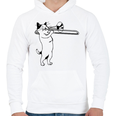 1 kép PRINTFASHION Macska harsonázik - Férfi kapucnis pulóver - Fehér