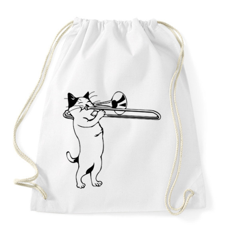 1 kép PRINTFASHION Macska harsonázik - Sportzsák, Tornazsák - Fehér