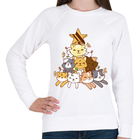1 kép PRINTFASHION Macska karácsonyfa - Női pulóver - Fehér
