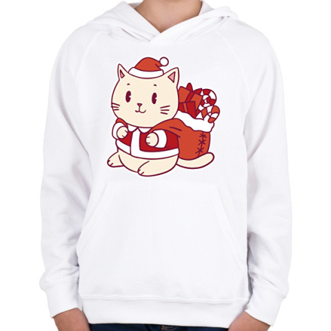 1 kép PRINTFASHION Macska mikulás - Gyerek kapucnis pulóver - Fehér