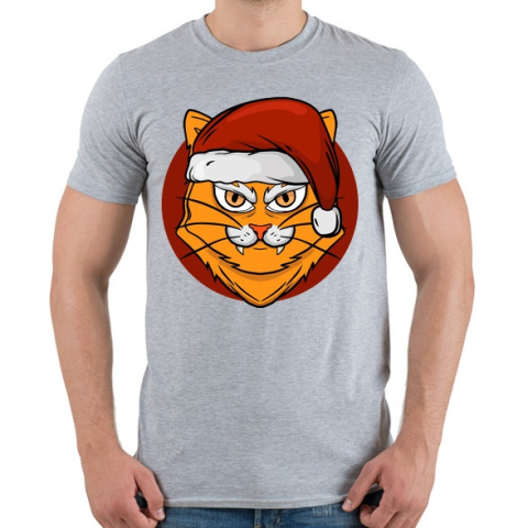 1 kép PRINTFASHION Macska mikulás sapkában - Férfi póló - Sport szürke