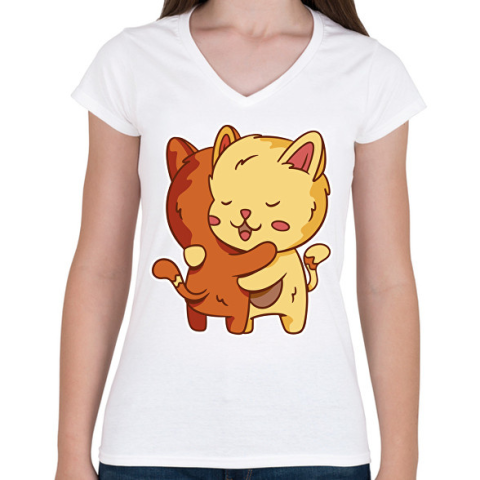 1 kép PRINTFASHION Macska ölelés - Női V-nyakú póló - Fehér