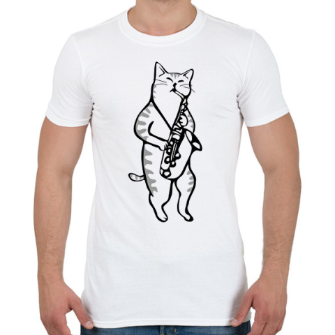1 kép PRINTFASHION Macska szaxofonozik - Férfi póló - Fehér