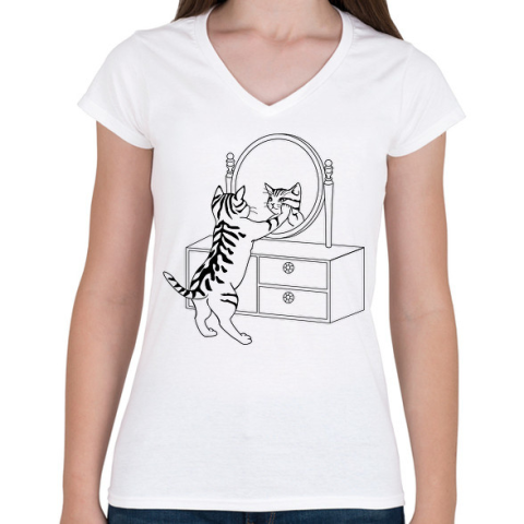 1 kép PRINTFASHION Macska szépítkezik - Női V-nyakú póló - Fehér