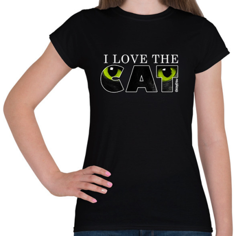 1 kép PRINTFASHION Macska zöld szemekkel sötét színű termékekre - Női póló - Fekete
