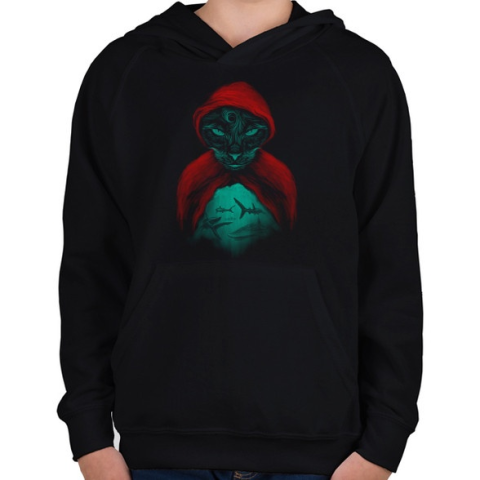 1 kép PRINTFASHION Macskacápák - Gyerek kapucnis pulóver - Fekete