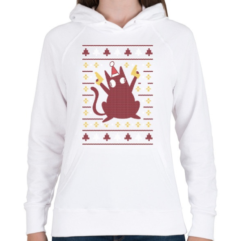 1 kép PRINTFASHION Macskás csúnya pulcsis minta - Női kapucnis pulóver - Fehér