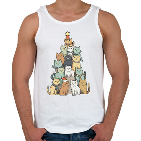 1 kép PRINTFASHION Macskás karácsonyfa - Férfi atléta - Fehér