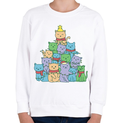 1 kép PRINTFASHION Macskás karácsonyfa - Gyerek pulóver - Fehér