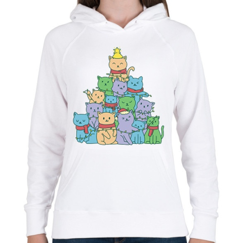 1 kép PRINTFASHION Macskás karácsonyfa - Női kapucnis pulóver - Fehér