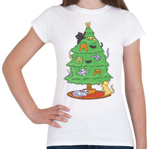 1 kép PRINTFASHION Macskás karácsonyfa - Női póló - Fehér