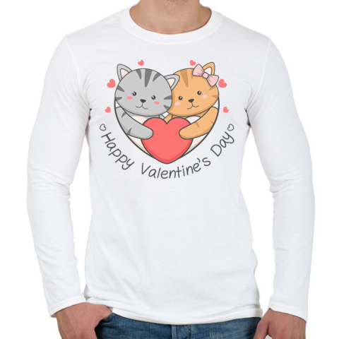 1 kép PRINTFASHION Macskás Valentin nap - Férfi hosszú ujjú póló - Fehér