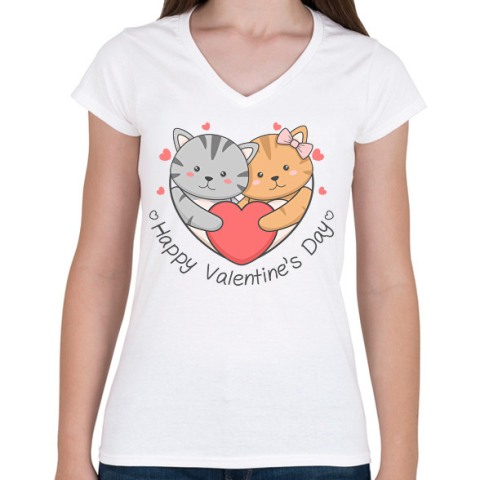 1 kép PRINTFASHION Macskás Valentin nap - Női V-nyakú póló - Fehér