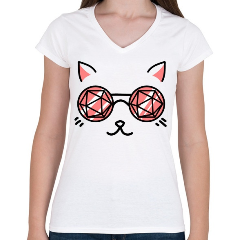 1 kép PRINTFASHION Macskaszem - Női V-nyakú póló - Fehér