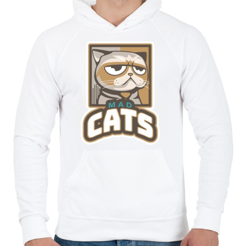 1 kép PRINTFASHION Mad Cats - Férfi kapucnis pulóver - Fehér