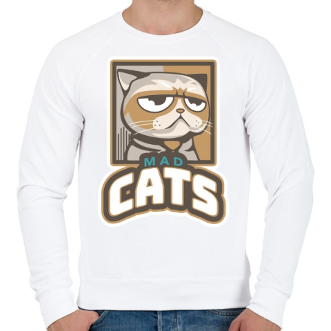 1 kép PRINTFASHION Mad Cats - Férfi pulóver - Fehér