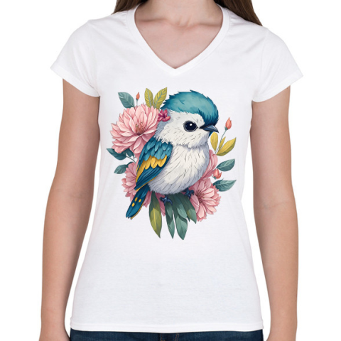 1 kép PRINTFASHION Madár bébi - Női V-nyakú póló - Fehér