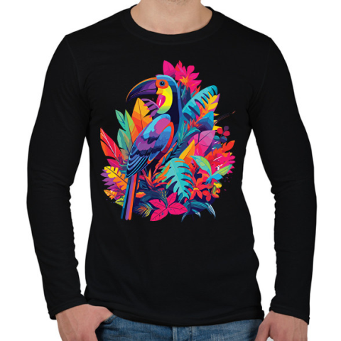 1 kép PRINTFASHION Madár - Férfi hosszú ujjú póló - Fekete