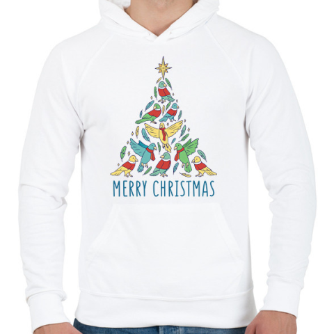 1 kép PRINTFASHION Madár karácsonyfa - Férfi kapucnis pulóver - Fehér