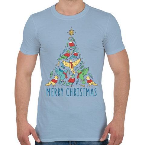 1 kép PRINTFASHION Madár karácsonyfa - Férfi póló - Világoskék