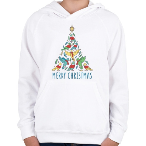 1 kép PRINTFASHION Madár karácsonyfa - Gyerek kapucnis pulóver - Fehér