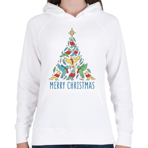 1 kép PRINTFASHION Madár karácsonyfa - Női kapucnis pulóver - Fehér