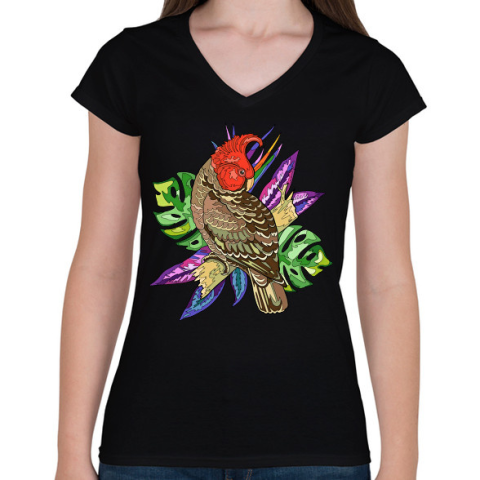 1 kép PRINTFASHION Madár - Női V-nyakú póló - Fekete