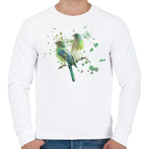 1 kép PRINTFASHION madarak - Férfi pulóver - Fehér