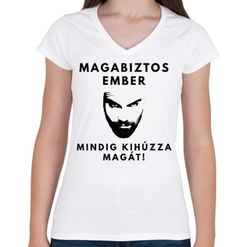1 kép PRINTFASHION MAGABIZTOS EMBER - Női V-nyakú póló - Fehér