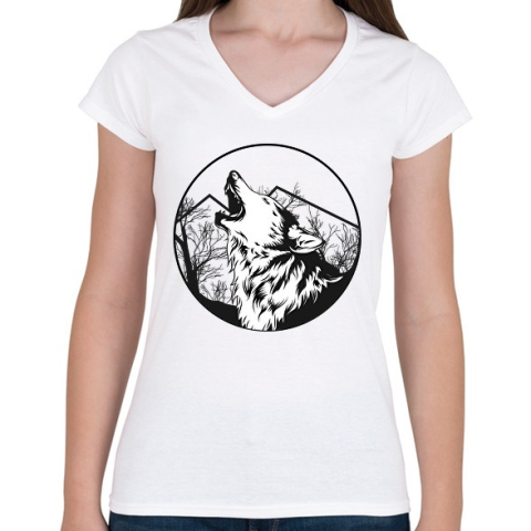 1 kép PRINTFASHION Magányos farkas - Női V-nyakú póló - Fehér