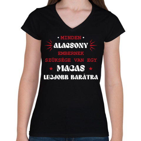 1 kép PRINTFASHION Magas legjobb barát - Női V-nyakú póló - Fekete