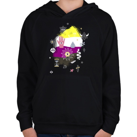 1 kép PRINTFASHION Mágikus nembináris - Gyerek kapucnis pulóver - Fekete