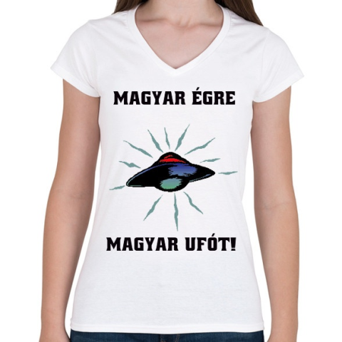 1 kép PRINTFASHION magyar égre magyar ufót - Női V-nyakú póló - Fehér