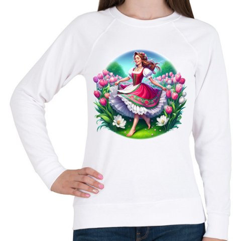 1 kép PRINTFASHION Magyar lány tavaszi virágok közt - Női pulóver - Fehér