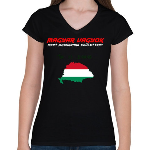 1 kép PRINTFASHION magyar vagyok - Női V-nyakú póló - Fekete