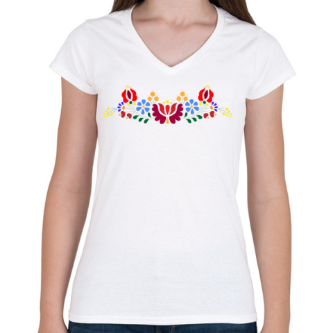 1 kép PRINTFASHION Magyaros minta2 - Női V-nyakú póló - Fehér