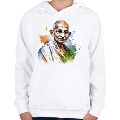 1 kép PRINTFASHION Mahatma Gandhi - Gyerek kapucnis pulóver - Fehér