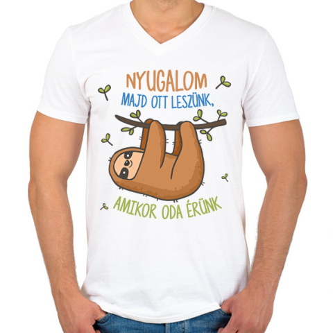 1 kép PRINTFASHION Majd ott leszünk - Férfi V-nyakú póló - Fehér