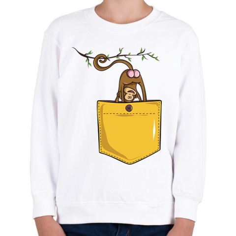 1 kép PRINTFASHION Majmos zsebminta - Gyerek pulóver - Fehér