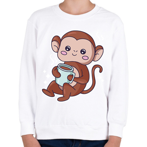 1 kép PRINTFASHION Majom kávéval - Gyerek pulóver - Fehér