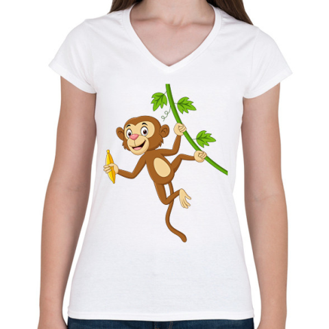 1 kép    PRINTFASHION majom - Női V-nyakú póló - Fehér