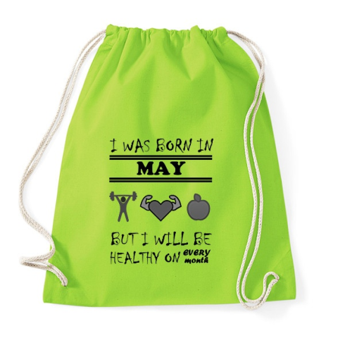 1 kép PRINTFASHION Májusban születtem de minden hónapban egészségesen élek - Sportzsák, Tornazsák - Limezöld