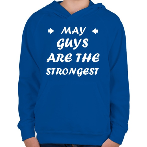 1 kép PRINTFASHION Májusi férfiak a legerősebbek - Gyerek kapucnis pulóver - Királykék