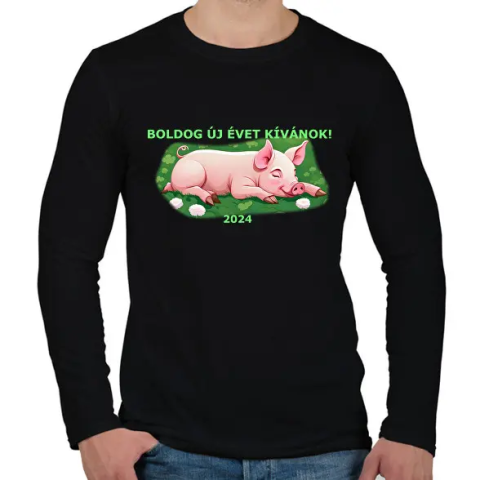 1 kép PRINTFASHION malacka szöveggel - Férfi hosszú ujjú póló - Fekete
