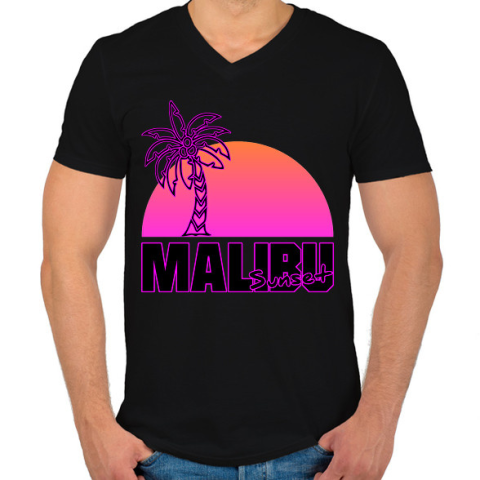 1 kép PRINTFASHION Malibu - Férfi V-nyakú póló - Fekete