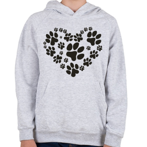 1 kép PRINTFASHION mancs szív fekete - Gyerek kapucnis pulóver - Sport szürke