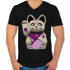 1 kép PRINTFASHION maneki neko - Férfi V-nyakú póló - Fekete